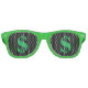 Cool green retro sunglasses with dollar sign. Unisex for men and women. Great for a fun expensive million dollar look.