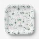 Green Monogram Bauble Pattern Square Christmas Paper Plate