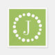 Personalized Party Supplies - Green with White Monogrammed Letter Initial encircled by polka dots on Paper Napkins. Keep the J Monogram or change to your own.
