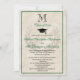 Green with marble cream pattern background design. Classic monogrammed single letter initial (your choice of first name or last name) is stately and handsome for the male or female college, trade school, or any level graduate. This inexpensive, cheap value priced modern classic style graduation announcement or graduation ceremony invitation is perfect for university or graduate school graduates, for an open house, casual lunch reception or formal party. Celebrate the monumental accomplishment of a bachelor's degree, associates degree, masters or doctorate degree. Classic design features subtle laurel wreath emblem, personalized monogram, along with elegant script writing. Very Easy to personalize with your information. Choose your colour by choosing "customize further" and changing text and background colours on front and back. Formal and traditional classicsl style graduation invite for men or women, girls or boys of any age.