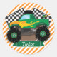 Green Monster Truck, Chequered Flag; Orange Stripe Classic Round Sticker