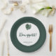 Green Monstera Leaf design. This Wedding welcome paper plate template combines two size of font for more dynamic look.