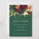 Green Moody Floral Burgundy Wedding Save the Date Invitation