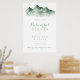 This modern calligraphy rehearsal dinner welcome poster is perfect for a rustic wedding rehearsal. The design features a watercolor hand-painted green mountain, inspiring a countryside theme.