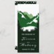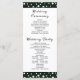 Green mountains and conifer trees ceremony and party wedding program . An elegant wedding design featuring a mountain range through conifers and your names in handwritten style. The back includes dark green and white borders with white polka dots on top and at the bottom of the card.