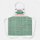Christmas apron with printed green gingham, your name, a charming Christmas pun - baking spirits bright - and stars and holly and a rolling pin in red, white, and green. Personalized Christmas baking apron with a cute retro design.