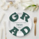 GRAD in bold dark green lettering curves around the edges of these graduation party paper plates - available in 2 sizes. Congratulations above the name of your graduate and the Class of below. The perfect addition to your table decor for upcoming grad parties. **TIP: Click on CUSTOMIZE button; click on COLOR box on top right; enter your colour hex code in the #xxxxxx box to match your school colours. SEE ENTIRE COLLECTION of pre-done colour combinations and more in our store.
