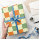 Green Orange Brown Chequered Gingham Pattern Wrapping Paper