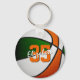 This easy-to-personalize basketball themed keychain features the realistic image of a basketball that has alternating green, white and orange recolored panels on the front and a simple green basketball shape on the back - easily personalize with player name & jersey number on the front and school or club name & mascot name on the back - by katz_d_zynes