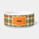This customizable gingham-based pet bowl design with shades of green and orange is a great choice for your kitchen, cafe, or bakery!
