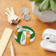 This personalized volleyball keychain with team name features a green, orange and white volleyball upon which you can customize the player's name and jersey number plus school team and mascot name - by katz_d_zynes
