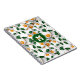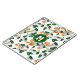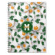 This soccer themed spiral notebook features a pattern of randomly arranged green, orange and white soccer balls in varying sizes turned every which way on a white background - player name and monogram or jersey number are customizable - by katz_d_zynes