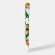 This volleyball themed iPhone case for girls features varied size green, orange and white volleyballs arranged in a random pattern on a customizable white background -- the volleyballs' green & orange panels are blended with a floral kaleidoscopic pattern for a girly, artsy appearance that is still sporty - customize her monogram - by katz_d_zynes