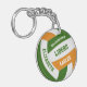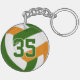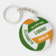 This team colours volleyball themed keychain for girls or boys features a realistic looking green, orange and white volleyball upon which you can customize the player's name, jersey number and court position, plus school or club name and mascot name in a varsity letter style font - by katz_d_zynes