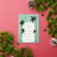 Ce faire-part de mariage boho serait parfait pour toute personne qui accueille un mariage tropical de destination ou toute personne qui veut une ambiance estivale pour son invitation. Le design présente des palmiers brillants en feuille d'or avec une lune et des étoiles sur un arrière - plan vert menthe avec et l'inverse de l'invitation a un motif d'étoile boho à égaler.