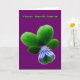 This greeting card features a photograph of a wild Pansy flower. The photo has been artificially coloured resulting in a pansy with light and dark shades of green and a pale blue centre. The background is purple to show off the beauty of this flower to the maximum. There is customizable green text above the pansy, on the front of th card, making this card suitable for any occasion.