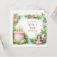 Surrounding the fairies and a beautifully adorned birthday cake, a magical garden blooms with intricately illustrated flowers in soft shades.