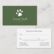 Green Paw Dog Walking Pet Sitting Vet Appointment business card template with a creative image of a trendy pet paw. An appointment card on the back of this Dog Walking Pet Sitting Vet business card template, which helps you distributed your business cards. You can change text and background colours to make them perfect for your taste. A great design for dog walker, pet sitting, veterinarian, dog grooming or training and other pet related services. A standard business card size. Business card dimensions are 3.5" x 2". This business card is designed by superdazzle.com