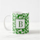 Enjoy your coffee or tea while feeling like you're in a vegetable garden. This mug features a design of pea pods and white flowers. Personalize with your initial to make it extra special.
