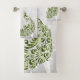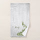 Add an elegant touch to your bath with a Green Peacock Personalized Bath Towel Set. Towel set design features a vibrant green peacock, a soft white leaf vine against a light grey grunge background with an area to personalize with your name. Additional gift items available with this design as well as a variety of colours.