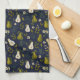Green Pear Watercolor Pattern on Dark Blue Kitchen Towel