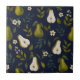 This ceramic tile design showcases beautifully hand-painted watercolor pears in lush green tones, surrounded by flowing leaves and subtle floral details. The deep navy background enhances the vibrancy of the artwork, creating a sophisticated botanical design that feels both organic and timeless.