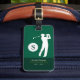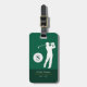 Stylized illustration of a golf player on dark green background color, personalized with his name and initial letter, and custom words (Golf Club name, a slogan, or any other info).