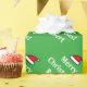 Personalized name green Santa Claus hat Christmas wrapping paper. Personalizable giftwrap text for custom seasons greetings and name of child. Customizable background colour and text for your Holiday wishes or funny note. Surprise your friends and family during the Holidays. Cute custom Santa Clause hat design for xmas party favours and presents. Suitable for men, women and kids (boys or girls). Whimsical typography. Green and red colours. Fun gift wrap for mom, dad, son, daughter, sister, children etc. Custom DIY X-mas accessories and supplies for wrapping presents. Add your own name to this template.