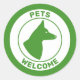 Green Pets Welcome And Dog With Pricked Up Ears Classic Round Sticker