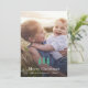 Elegant and rustic green pine tree holiday pattern with white Merry Christmas typography, your name, and photo.
