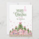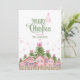 Green & Pink Bow Christmas Village Holiday Card