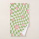 Green Pink Chequered Floral Bath Towel Set