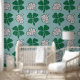 Green Pink Clover Shamrock Hand Drawn Pattern Wallpaper. Beautiful and simple clovers on green and pink colours on a green background. The design is a digital drawing.
