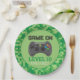 Green Pixelated level up Video Game Birthday Party Paper Plate