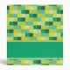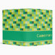 This back to school notebook features a design with geeks and gamers in mind feature shades of green and yellow squares in a pixelated pattern resembling 16 bit graphics in popular video games. A matching colour strip is near the bottom of the notebook with a template area to add your name or other custom text.