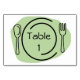 Colourful customized table cards dotted with plates, knives and fork illustration. Ideal for general catering, parties or businesses. (6 colours to choose from or mix and match)