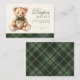 Green Plaid Bear Baby Shower Diaper Raffle Enclosure Card