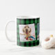 Modern and stylish customizable mug featuring green plaid pattern with three photo collage and monogram tag. Personalize by adding photos and monogram. This personalized mug will be perfect as a gift for birthdays, Mother's Day Father's day and Christmas.