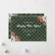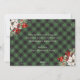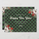 Green buffalo plaid New Year card featuring snowflakes and a watercolor painting of poinsettia, holly and red berries. Easily personalize online.