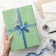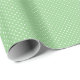 Green polka dot pattern on glossy Christmas wrapping paper.