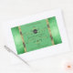 Make a lasting impression with this luxury and modern product label design featuring shimmering gold ornaments on a green coloured background with glitter borders.