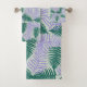 Green Purple Fern Leaves Retro 70s Flower Pattern Bath Towel Set