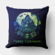 Green Purple Gothic Haunted House Happy Halloween Throw Pillow