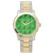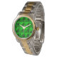 This men's watch has a geometric design of triangles that form squares that look like a bird's eye view of pyramids.