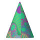 This colourful fractal pattern party hat has bright, vibrant and rainbow colours such as green and purple. This party hat can be used for birthday parties, celebrations and other special events. If you are looking for colourful party supplies then this party hat will work for your party planning needs. Check to see if matching paper plates and napkins are available for this specific design to match the party hat.