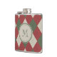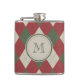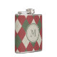Green & Red Argyle Plaid Pattern with Monogram Hip Flask