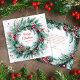 Green Red Christmas Wreath Holly Elegant Holiday Card