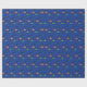 Green & red gondolas with skis on blue Christmas wrapping paper.