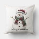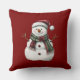 Green Red Merry Christmas Trees Snowman Throw Pillow