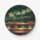 Green Red Plaid Santa Sleigh Merry Christmas Paper Plate